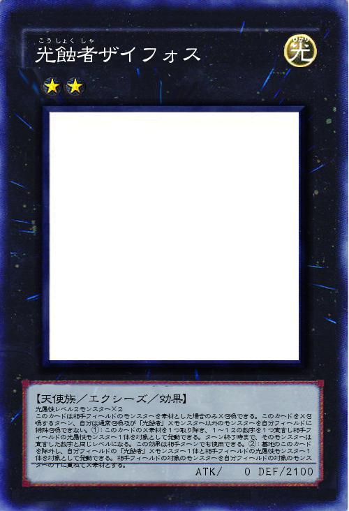 | 光属性レベル2モンスター×2 このカードは相手フィールドのモンスターを素材とした場合のみX召喚できる。このカードをX召喚するターン、自分は通常召喚及び「光蝕者」Xモンスター以外のモンスターを自分フィールドに特殊召喚できない。①:このカードのX素材を1つ取り除き、1~12の数字を1つ宣言し相手フィールドの光属性モンスター1体を対象として発動できる。ターン終了時まで、そのモンスターは宣言した数字と同じレベルになる。この効果は相手ターンでも使用できる。②:墓地のこのカードを除外し、自分フィールドの「光蝕者」Xモンスター1体と相手フィールドの光属性モンスター1体を対象として発動できる。相手フィールドの対象のモンスターを自分フィールドの対象のモンスターの下に重ねてX素材とする。 | |||