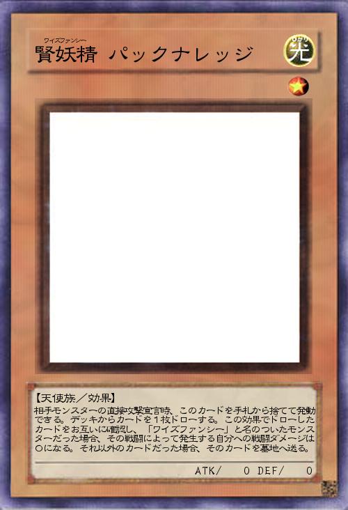 | 相手モンスターの直接攻撃宣言時、このカードを手札から捨てて発動できる。デッキからカードを1枚ドローする。この効果でドローしたカードをお互いに確認し、「ワイズファンシー」と名のついたモンスターだった場合、その戦闘によって発生する自分への戦闘ダメージは0になる。それ以外のカードだった場合、そのカードを墓地へ送る。 | |||