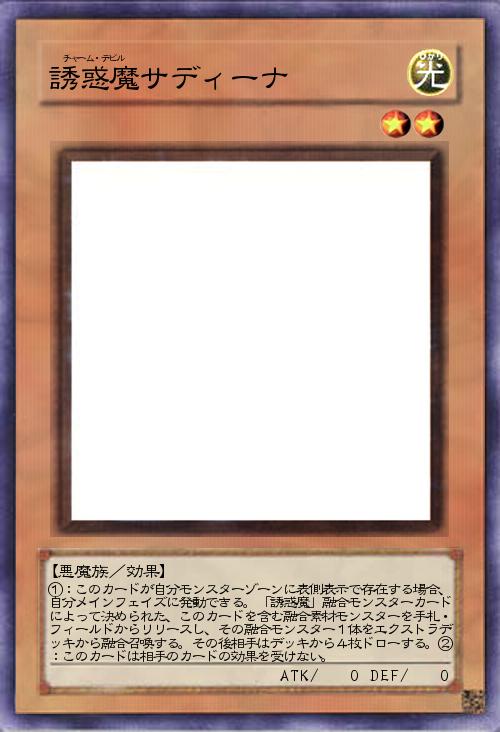 | ①:このカードが自分モンスターゾーンに表側表示で存在する場合、自分メインフェイズに発動できる。「誘惑魔」融合モンスターカードによって決められた、このカードを含む融合素材モンスターを手札・フィールドからリリースし、その融合モンスター1体をエクストラデッキから融合召喚する。その後相手はデッキから4枚ドローする。②:このカードは相手のカードの効果を受けない。 | |||