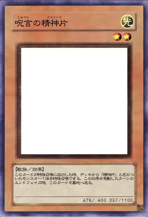 | このカードが特殊召喚に成功した時、デッキから「精神片」と名のついたモンスター1体を特殊召喚できる。この効果を発動したターンのエンドフェイズ時、このカードを墓地へ送る。 | |||