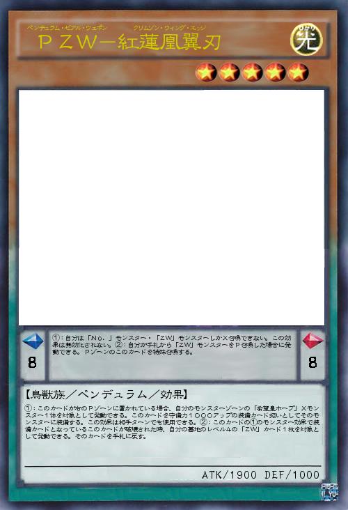 | ①:自分は「No.」モンスター・「ZW」モンスターしかX召喚できない。この効果は無効化されない。②:自分が手札から「ZW」モンスターをP召喚した場合に発動できる。Pゾーンのこのカードを特殊召喚する。 | |||