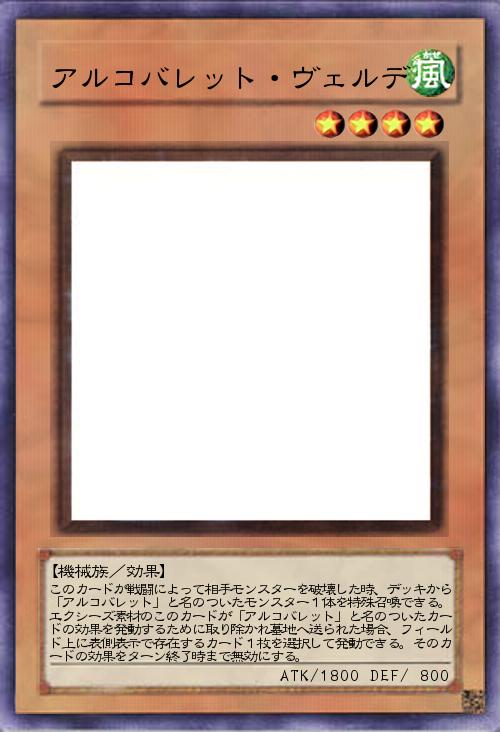 | このカードが戦闘によって相手モンスターを破壊した時、デッキから「アルコバレット」と名のついたモンスター1体を特殊召喚できる。エクシーズ素材のこのカードが「アルコバレット」と名のついたカードの効果を発動するために取り除かれ墓地へ送られた場合、フィールド上に表側表示で存在するカード1枚を選択して発動できる。そのカードの効果をターン終了時まで無効にする。 | |||