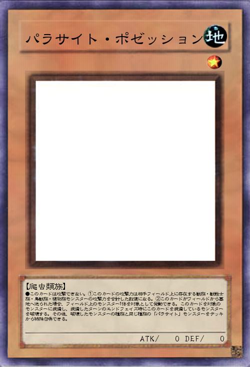 | ●このカードは攻撃できない。①このカードの攻撃力は相手フィールド上に存在する獣族・獣戦士族・鳥獣族・植物族モンスターの攻撃力を合計した数値になる。②このカードがフィールドから墓地へ送られた場合、フィールド上のモンスター1体を対象として発動できる。このカードを対象のモンスターに装備し、装備したターンのエンドフェイズ時にこのカードを装備しているモンスターを破壊する。その後、破壊したモンスターの種族と同じ種族の「パラサイト」モンスターをデッキから特殊召喚できる。 | |||