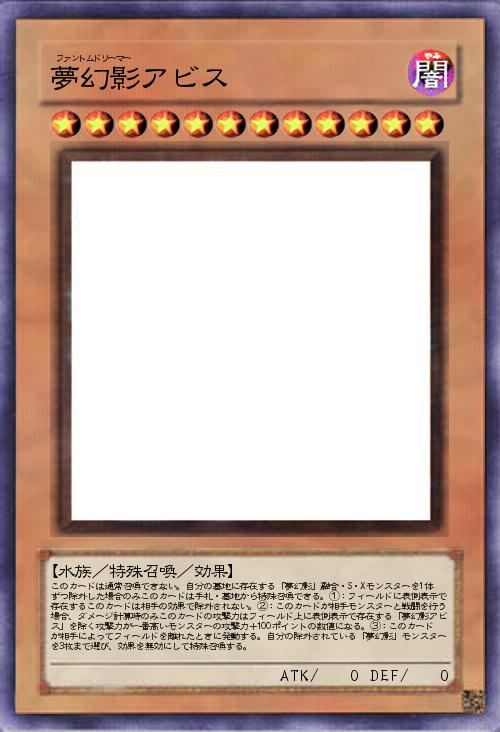 | このカードは通常召喚できない。自分の墓地に存在する「夢幻影」融合・S・Xモンスターを1体ずつ除外した場合のみこのカードは手札・墓地から特殊召喚できる。①:フィールドに表側表示で存在するこのカードは相手の効果で除外されない。②:このカードが相手モンスターと戦闘を行う場合、ダメージ計算時のみこのカードの攻撃力はフィールド上に表側表示で存在する「夢幻影アビス」を除く攻撃力が一番高いモンスターの攻撃力+100ポイントの数値になる。③:このカードが相手によってフィールドを離れたときに発動する。自分の除外されている「夢幻影」モンスターを3枚まで選び、効果を無効にして特殊召喚する。 | |||