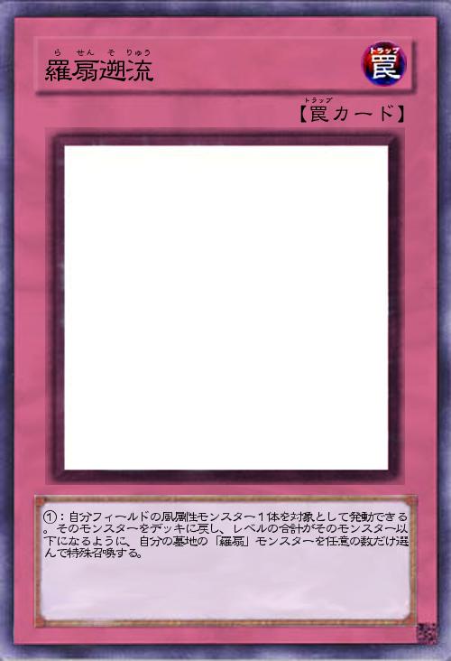 | ①:自分フィールドの風属性モンスター1体を対象として発動できる。そのモンスターをデッキに戻し、レベルの合計がそのモンスター以下になるように、自分の墓地の「羅扇」モンスターを任意の数だけ選んで特殊召喚する。 | |||