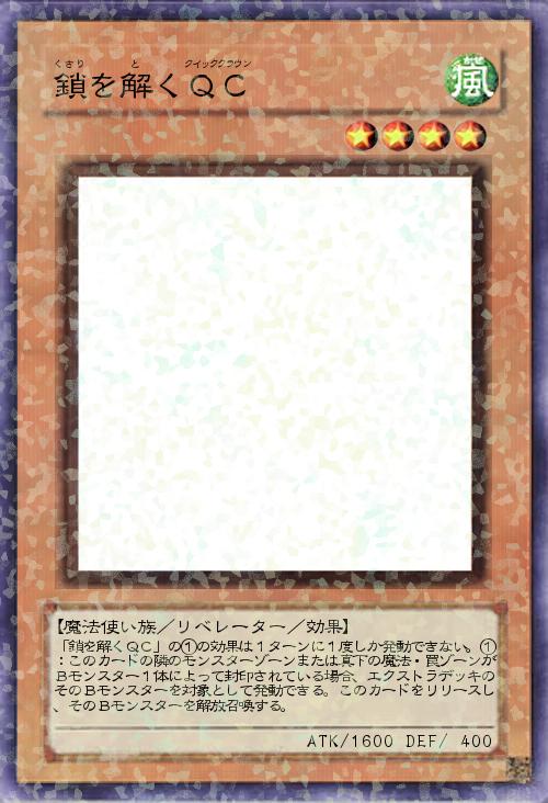 | 「鎖を解くQC」の①の効果は1ターンに1度しか発動できない。①:このカードの隣のモンスターゾーンまたは真下の魔法・罠ゾーンがBモンスター1体によって封印されている場合、エクストラデッキのそのBモンスターを対象として発動できる。このカードをリリースし、そのBモンスターを解放召喚する。 | |||