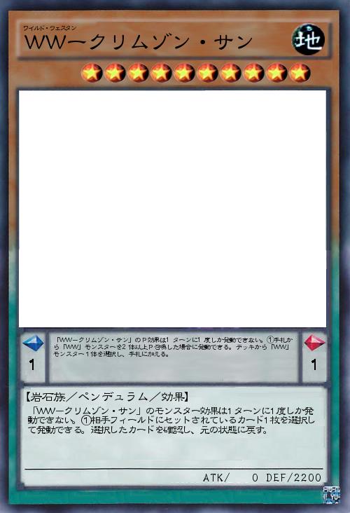 | 「WW-クリムゾン・サン」のP効果は1ターンに1度しか発動できない。①手札から「WW」モンスターを2体以上P召喚した場合に発動できる。デッキから「WW」モンスター1体を選択し、手札に加える。 | |||