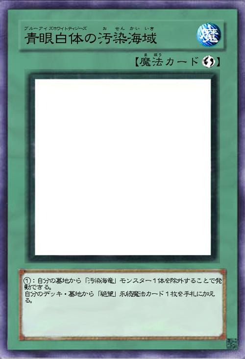 汚染海竜はそのうち作りますが、多分今のところは除外されたらデュエル中に1回だけ墓地に行き、墓地にいるとモンスターに装備・破壊されたら除外みたいな感じだと思います。」(2016-04-07 17:02)