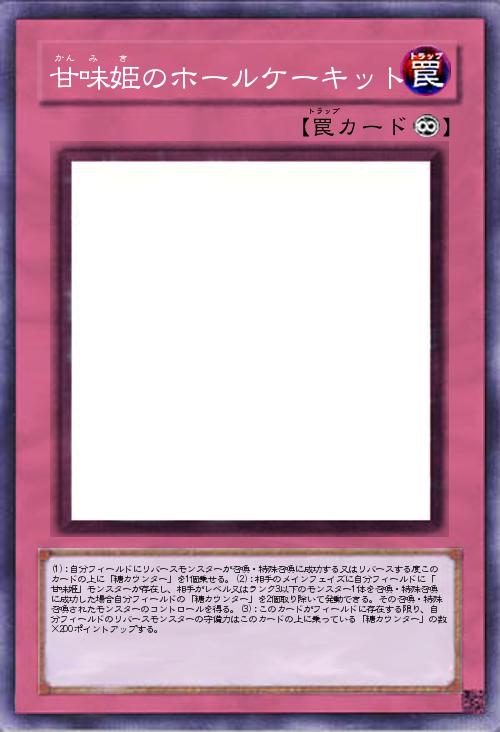 | (1):自分フィールドにリバースモンスターが召喚・特殊召喚に成功する又はリバースする度このカードの上に「糖カウンター」を1個乗せる。(2):相手のメインフェイズに自分フィールドに「甘味姫」モンスターが存在し、相手がレベル又はランク3以下のモンスター1体を召喚・特殊召喚に成功した場合自分フィールドの「糖カウンター」を2個取り除いて発動できる。その召喚・特殊召喚されたモンスターのコントロールを得る。(3):このカードがフィールドに存在する限り、自分フィールドのリバースモンスターの守備力はこのカードの上に乗っている「糖カウンター」の数×200ポイントアップする。 | |||