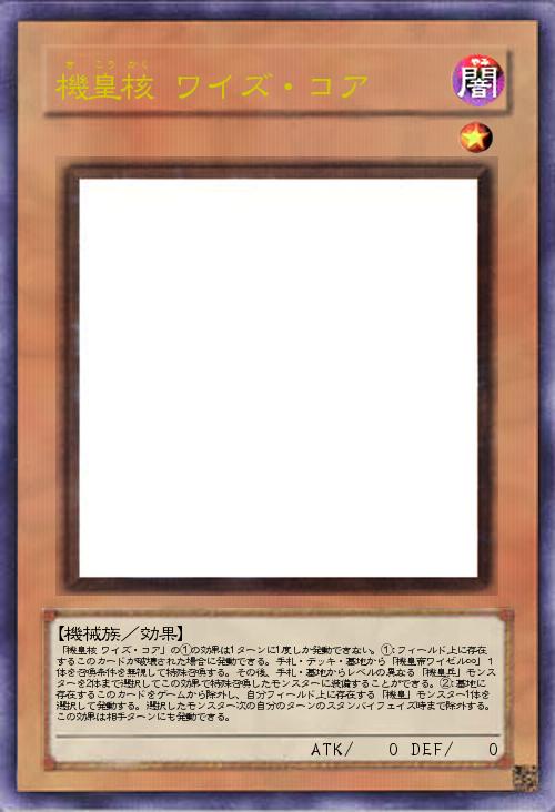 | 「機皇核 ワイズ・コア」の①の効果は1ターンに1度しか発動できない。①:フィールド上に存在するこのカードが破壊された場合に発動できる。手札・デッキ・墓地から「機皇帝ワイゼル∞」1体を召喚条件を無視して特殊召喚する。その後、手札・墓地からレベルの異なる「機皇兵」モンスターを2体まで選択してこの効果で特殊召喚したモンスターに装備することができる。②:墓地に存在するこのカードをゲームから除外し、自分フィールド上に存在する「機皇」モンスター1体を選択して発動する。選択したモンスター次の自分のターンのスタンバイフェイズ時まで除外する。この効果は相手ターンにも発動できる。 | |||
