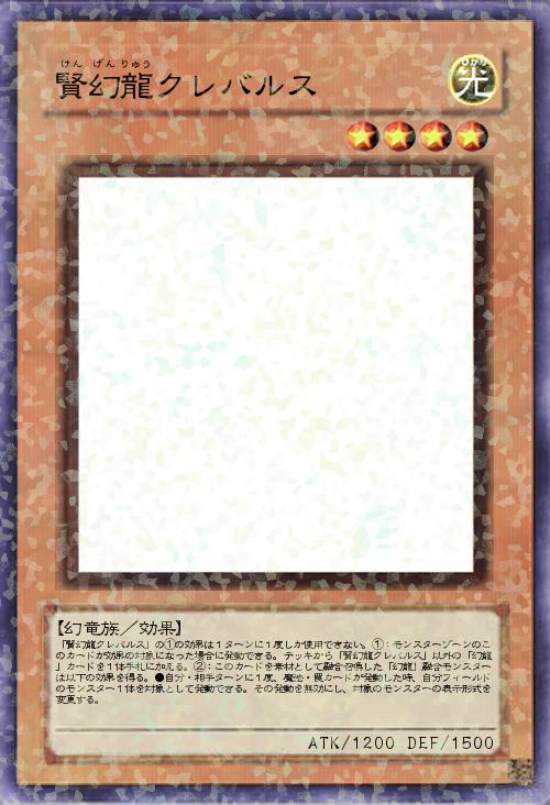 | 「賢幻龍クレバルス」の①の効果は1ターンに1度しか使用できない。①:モンスターゾーンのこのカードが効果の対象になった場合に発動できる。デッキから「賢幻龍クレバルス」以外の「幻龍」カードを1体手札に加える。②:このカードを素材として融合召喚した「幻龍」融合モンスターは以下の効果を得る。●自分・相手ターンに1度、魔法・罠カードが発動した時、自分フィールドのモンスター1体を対象として発動できる。その発動を無効にし、対象のモンスターの表示形式を変更する。 | |||