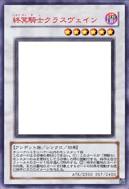 | チューナー+チューナー以外のモンスター1体 このカードはS召喚の素材にできない。①:このカードが「冥騎士」モンスターのみを素材としてS召喚した時に発動できる。相手は自分フィールドのカード1枚を選んで除外する。②:相手が墓地のカードの効果、または墓地のカードを対象とするカードの効果を発動する度に相手に500ダメージを与える。 | |||