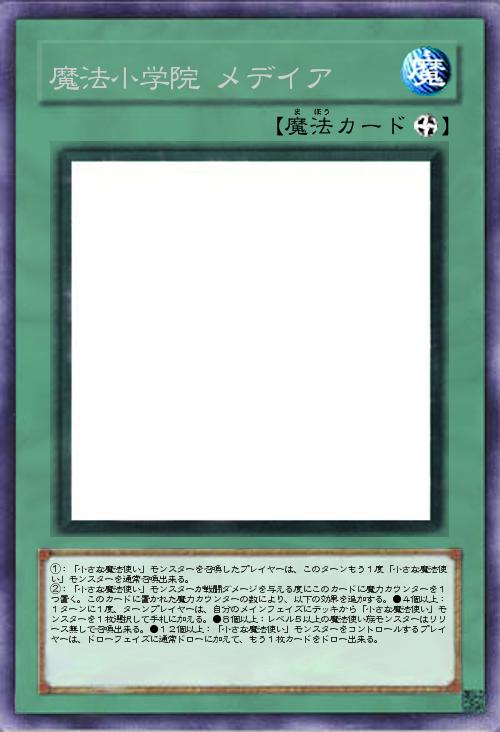 | ①:「小さな魔法使い」モンスターを召喚したプレイヤーは、このターンもう1度「小さな魔法使い」モンスターを通常召喚出来る。 ②:「小さな魔法使い」モンスターが戦闘ダメージを与える度にこのカードに魔力カウンターを1つ置く。このカードに置かれた魔力カウンターの数により、以下の効果を追加する。●4個以上:1ターンに1度、ターンプレイヤーは、自分のメインフェイズにデッキから「小さな魔法使い」モンスターを1枚選択して手札に加える。●8個以上:レベル5以上の魔法使い族モンスターはリリース無しで召喚出来る。●12個以上:「小さな魔法使い」モンスターをコントロールするプレイヤーは、ドローフェイズに通常ドローに加えて、もう1枚カードをドロー出来る。 | |||