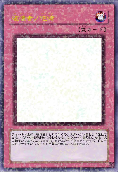 | フィールド上に「破壊者」と名の付くモンスターがいるときに発動できる。①ターンを強制的に終わらせる。このカードを発動した後、次の相手のフェイズが来るまで、自分はカードをセットできず、ドロー以外でデッキからカードを手札に加えることはできない。 | |||