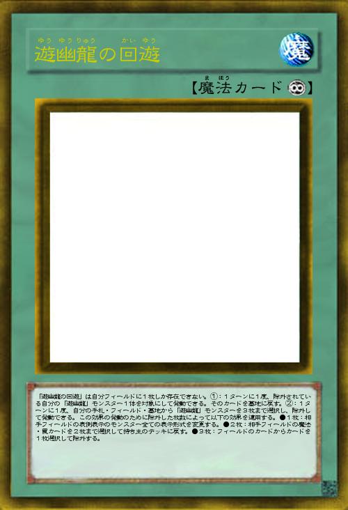 | 「遊幽龍の回遊」は自分フィールドに1枚しか存在できない。①:1ターンに1度、除外されている自分の「遊幽龍」モンスター1体を対象にして発動できる。そのカードを墓地に戻す。②:1ターンに1度、自分の手札・フィールド・墓地から「遊幽龍」モンスターを3枚まで選択し、除外して発動できる。この効果の発動のために除外した枚数によって以下の効果を適用する。●1枚:相手フィールドの表側表示のモンスター全ての表示形式を変更する。●2枚:相手フィールドの魔法・罠カードを2枚まで選択して持ち主のデッキに戻す。●3枚:フィールドのカードからカードを1枚選択して除外する。 | |||