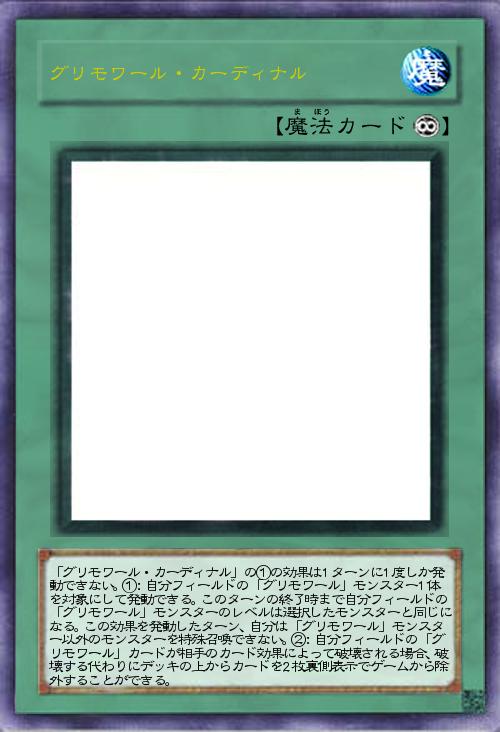 | 「グリモワール・カーディナル」の①の効果は1ターンに1度しか発動できない。①:自分フィールドの「グリモワール」モンスター1体を対象にして発動できる。このターンの終了時まで自分フィールドの「グリモワール」モンスターのレベルは選択したモンスターと同じになる。この効果を発動したターン、自分は「グリモワール」モンスター以外のモンスターを特殊召喚できない。②:自分フィールドの「グリモワール」カードが相手のカード効果によって破壊される場合、破壊する代わりにデッキの上からカードを2枚裏側表示でゲームから除外することができる。 | |||