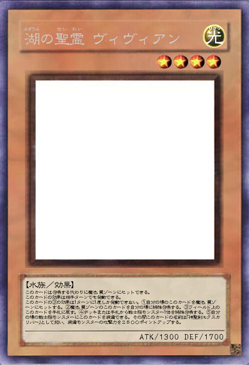 | このカードは召喚する代わりに魔法,罠ゾーンにセットできる。 このカードの効果は相手ターンでも発動できる。 このカードの③の効果は1ターンに1度しか発動できない。①自分の場のこのカードを魔法,罠ゾーンにセットする。②魔法,罠ゾーンのこのカードを自分の場に特殊召喚する。③フィールド上のこのカードを手札に戻す。④デッキまたは手札から戦士族モンスター1体を特殊召喚する。⑤自分の場の戦士族モンスターにこのカードを装備できる。その間このカードの名前は「神聖剣エクスカリバー」として扱い、装備モンスターの攻撃力を2500ポイントアップする。 | |||