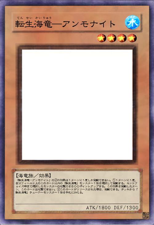 | 「転生海竜―アンモナイト」の②の効果は1ターンに1度しか発動できない。①1ターンに1度、自分フィールド上のこのカード以外の「転生海竜」モンスター1体を選択して発動する。エンドフェイズ時まで選択したモンスターの攻撃力を800ポイントアップする。この効果を発動したターン、このカードは攻撃できない。②このカードがリリースされた場合、発動できる。デッキから「転生海竜」チューナーモンスター1体を手札に加える。 | |||