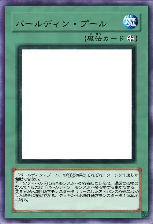 | 「パールディン・プール」の①②効果はそれぞれ1ターンに1度しか発動できない。 ①自分フィールドに効果モンスターが存在しない場合、通常の召喚に加えて1度だけ「パールディン」モンスターを召喚する事ができる。②自分が水属性通常モンスターをリリースしたアドバンス召喚に成功した場合に発動できる。デッキから水属性通常モンスターを1体墓地に送る。 | |||