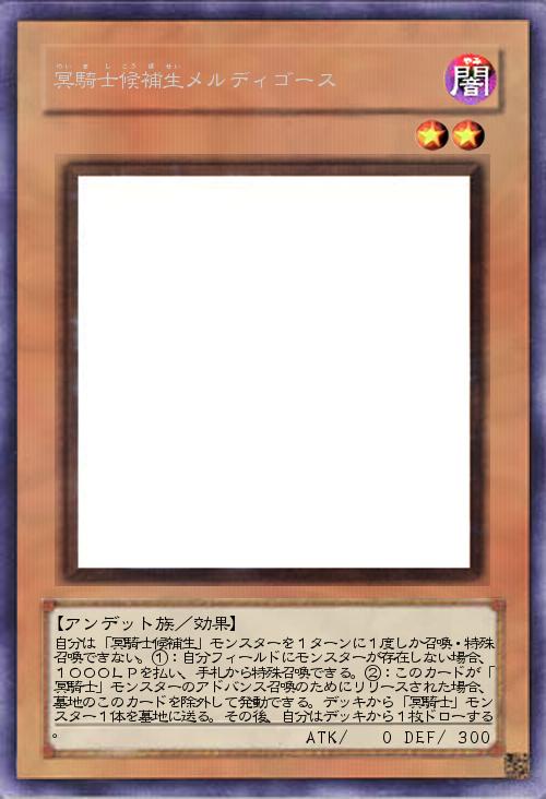 | 自分は「冥騎士候補生」モンスターを1ターンに1度しか召喚・特殊召喚できない。①:自分フィールドにモンスターが存在しない場合、1000LPを払い、手札から特殊召喚できる。②:このカードが「冥騎士」モンスターのアドバンス召喚のためにリリースされた場合、墓地のこのカードを除外して発動できる。デッキから「冥騎士」モンスター1体を墓地に送る。その後、自分はデッキから1枚ドローする。 | |||