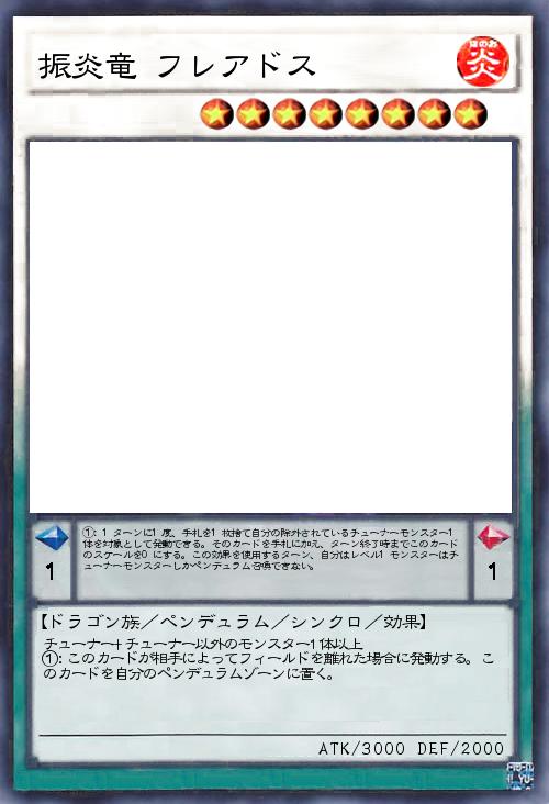 | チューナー+チューナー以外のモンスター1体以上 ①:このカードが相手によってフィールドを離れた場合に発動する。このカードを自分のペンデュラムゾーンに置く。 | |||