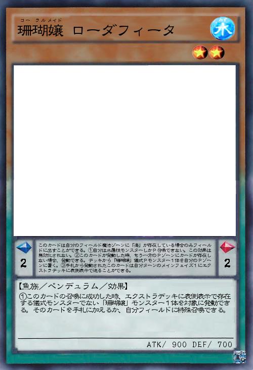 | ①このカードの召喚に成功した時、エクストラデッキに表側表示で存在する儀式モンスターでない「珊瑚嬢」モンスター1体を対象に発動できる。そのカードを手札に加えるか、自分フィールドに特殊召喚できる。 | |||