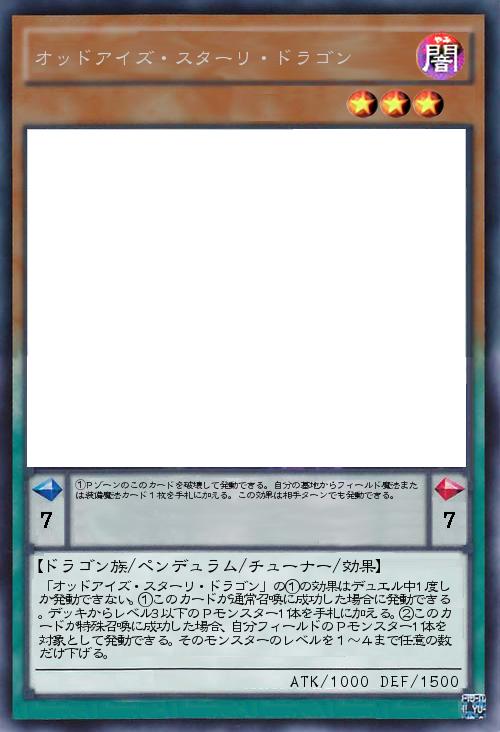 | 「オッドアイズ・スターリ・ドラゴン」の①の効果はデュエル中1度しか発動できない。①このカードが通常召喚に成功した場合に発動できる。デッキからレベル3以下のPモンスター1体を手札に加える。②このカードが特殊召喚に成功した場合、自分フィールドのPモンスター1体を対象として発動できる。そのモンスターのレベルを1~4まで任意の数だけ下げる。 | |||