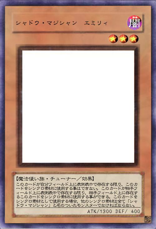| このカードが自分フィールド上に表側表示で存在する限り、このカードをシンクロ素材に使用する事はできない。このカードが相手フィールド上に表側表示で存在する限り、相手フィールド上に存在するこのカードをシンクロ素材に使用する事ができる。このカードをシンクロ素材として使用する場合、他のシンクロ素材は全て「シャドウ・マジシャン」と名のついたモンスターでなければならない。 | |||