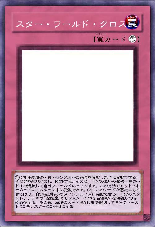 | ①:相手が魔法・罠・モンスターの効果を発動した時に発動できる。その発動を無効にし、除外する。その後、自分の墓地の魔法・罠カード1枚選択して自分フィールドにセットする。この方法でセットされたカードはこのターン中に発動できる。②:このカードが墓地に存在する限り、自分及び相手のメインフェイズに発動できる。自分のエクストラデッキの「星極皇」Xモンスター1体を召喚条件を無視して特殊召喚する。その後、墓地のカードを3枚まで選択して自分フィールドのXモンスターのX素材にする。 | |||
