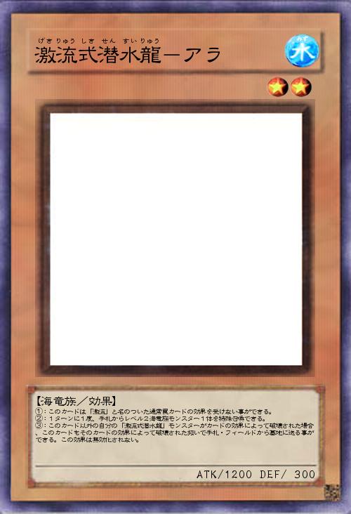 | ①:このカードは「激流」と名のついた通常罠カードの効果を受けない事ができる。 ②:1ターンに1度、手札からレベル2海竜族モンスター1体を特殊召喚できる。 ③:このカード以外の自分の「激流式潜水龍」モンスターがカードの効果によって破壊された場合、このカードもそのカードの効果によって破壊された扱いで手札・フィールドから墓地に送る事ができる。この効果は無効化されない。 | |||