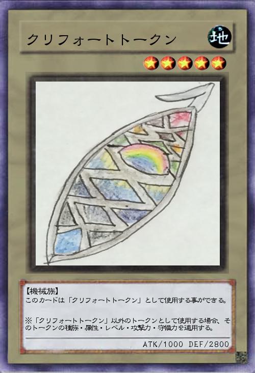 | このカードは「クリフォートトークン」として使用する事ができる。 ※「クリフォートトークン」以外のトークンとして使用する場合、そのトークンの種族・属性・レベル・攻撃力・守備力を適用する。 | |||