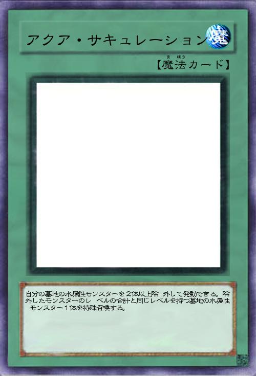 | 自分の墓地の水属性モンスターを2体以上除 外して発動できる。除外したモンスターのレ ベルの合計と同じレベルを持つ墓地の水属性 モンスター1体を特殊召喚する。 | |||