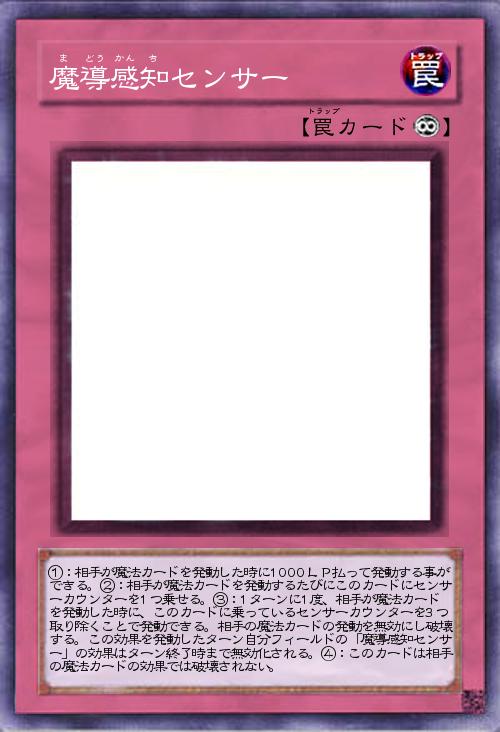 | ①:相手が魔法カードを発動した時に1000LP払って発動する事ができる。②:相手が魔法カードを発動するたびにこのカードにセンサーカウンターを1つ乗せる。③:1ターンに1度、相手が魔法カードを発動した時に、このカードに乗っているセンサーカウンターを3つ取り除くことで発動できる。相手の魔法カードの発動を無効にし破壊する。この効果を発動したターン自分フィールドの「魔導感知センサー」の効果はターン終了時まで無効化される。④:このカードは相手の魔法カードの効果では破壊されない。 | |||