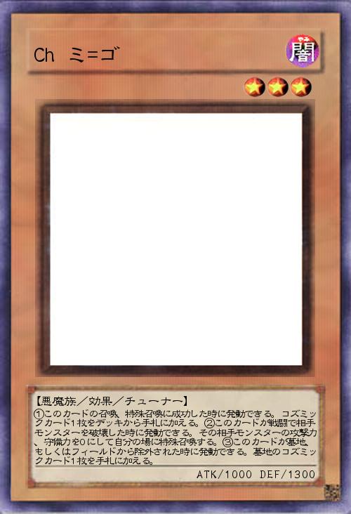 「このカードは効果に制限付け忘れてたので「Ch」がだいぶできたらリメイクしてこちらを消すと思います。コメントをしてくれる方はお手数ですが雑談掲示板の「オリカについての意見募集」にお願いします。」(2016-06-07 19:25)