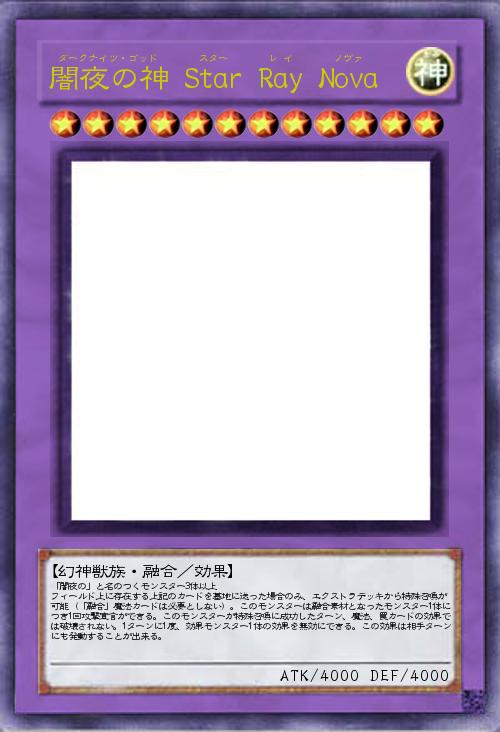「闇夜の」と名のつくモンスター3体以上 フィールド上に存在する上記のカードを墓地に送った場合のみ、エクストラデッキから特殊召喚が可能(「融合」魔法カードは必要としない)。このモンスターは融合素材となったモンスター1体につき1回攻撃宣言ができる。このモンスターが特殊召喚に成功したターン、魔法、罠カードの効果では破壊されない。1ターンに1度、効果モンスター1体の効果を無効にできる。この効果は相手ターンにも発動することが出来る。 |