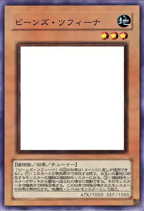 | 「ビーンズ・ツフィーナ」の②の効果は1ターンに1度しか使用できない。①:このカードが表側表示で存在する限り、お互いの墓地に存在するモンスターの種族は植物族モンスターになる。②:植物族モンスターがデッキから墓地へ送られた場合に発動できる。そのモンスターを守備表示で特殊召喚する。この効果で特殊召喚されたモンスターの効果は無効化され、地属性・レベル4モンスターとして扱う。 | |||