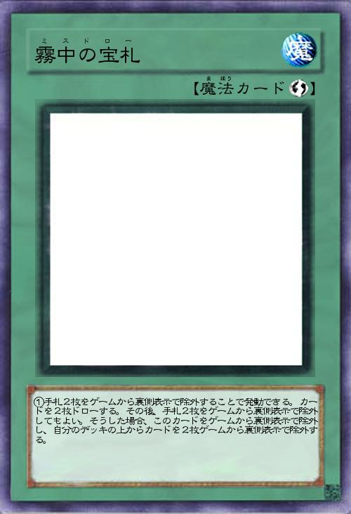 | ①手札2枚をゲームから裏側表示で除外することで発動できる。カードを2枚ドローする。その後、手札2枚をゲームから裏側表示で除外してもよい。そうした場合、このカードをゲームから裏側表示で除外し、自分のデッキの上からカードを2枚ゲームから裏側表示で除外する。 | |||