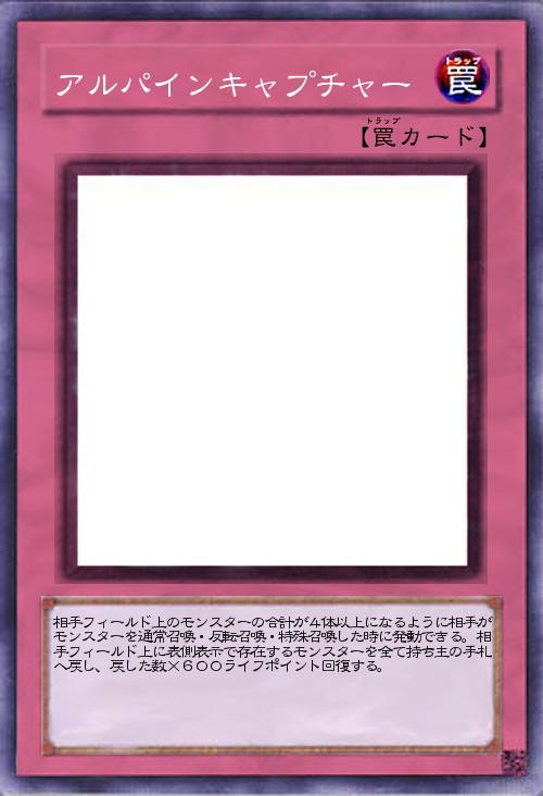 | 相手フィールド上のモンスターの合計が4体以上になるように相手がモンスターを通常召喚・反転召喚・特殊召喚した時に発動できる。相手フィールド上に表側表示で存在するモンスターを全て持ち主の手札へ戻し、戻した数×600ライフポイント回復する。 | |||