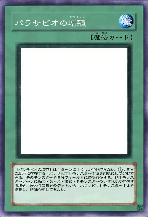 | 「パラサビオの増殖」は1ターンに1枚しか発動できない。①:自分の墓地に存在する「パラサビオ」モンスター1体を対象にして発動できる。そのモンスターを自分フィールドに特殊召喚する。相手モンスターゾーンに融合・S・X・儀式・Pモンスターのいずれかが存在する場合、代わりに自分のデッキから「パラサビオ」モンスター1体を選択し、特殊召喚してもよい。 | |||