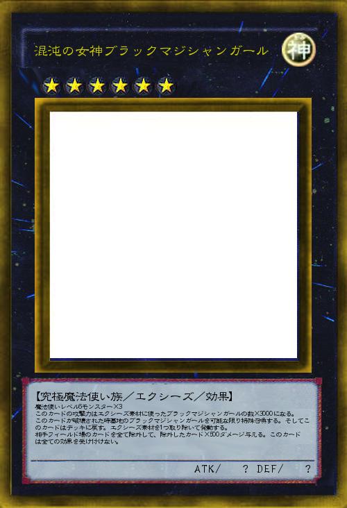 | 魔法使いレベル6モンスター×3 このカードの攻撃力はエクシーズ素材に使ったブラックマジシャンガールの数×3000になる。 このカードが破壊された時墓地のブラックマジシャンガールを可能な限り特殊召喚する。そしてこのカードはデッキに戻す。エクシーズ素材を1つ取り除いて発動する。 相手フィールド場のカードを全て除外して、除外したカード×500ダメージ与える。このカードは全ての効果を受け付けない。 | |||