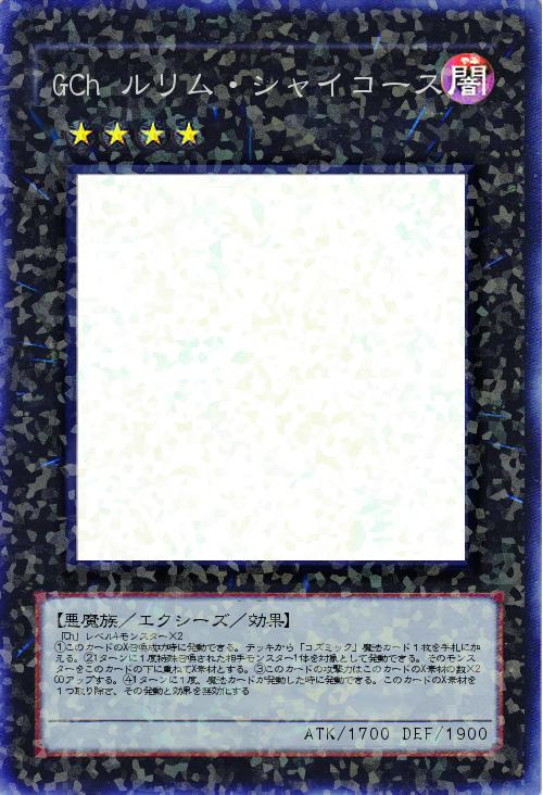 同カテゴリーの魔法カードサーチ・対処困難な除去・打点の上昇・魔法無効と、嬉しい効果がてんこ盛りカード。Chカテゴリーでは、積極的にエクシーズされて過労死要員の候補としてもあがりそうですな。相手から見たら「げぇっ!シャイコース」ですがw