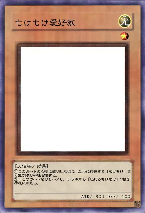 | ①このカードの召喚に成功した場合、墓地に存在する「もけもけ」を可能な限り特殊召喚する。 ②:このカードをリリースし、デッキから「怒れるもけもけ」1枚を手札に加える。 | |||