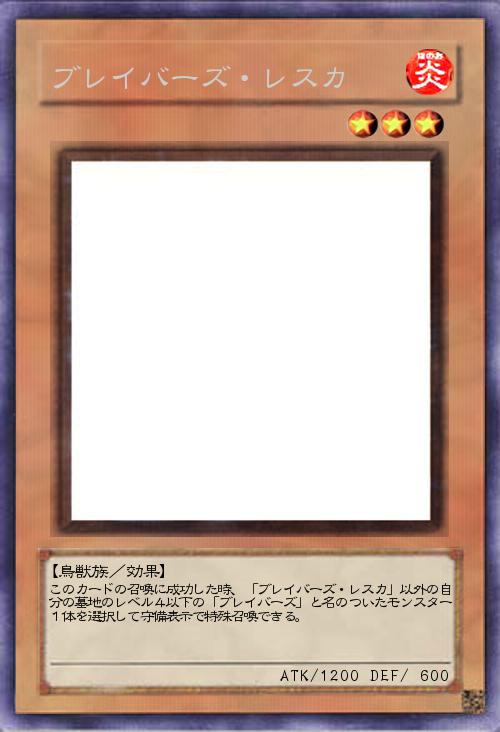 | このカードの召喚に成功した時、「ブレイバーズ・レスカ」以外の自分の墓地のレベル4以下の「ブレイバーズ」と名のついたモンスター1体を選択して守備表示で特殊召喚できる。 | |||