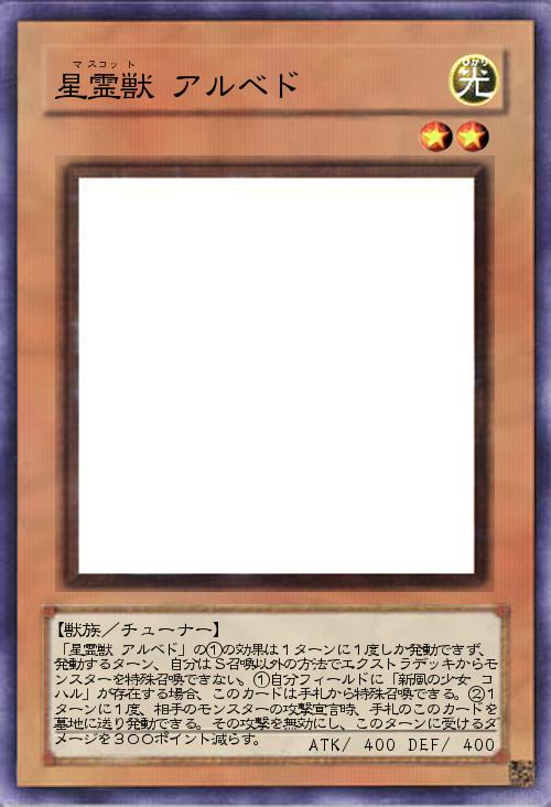| 「星霊獣 アルベド」の①の効果は1ターンに1度しか発動できず、発動するターン、自分はS召喚以外の方法でエクストラデッキからモンスターを特殊召喚できない。①自分フィールドに「新風の少女 コハル」が存在する場合、このカードは手札から特殊召喚できる。②1ターンに1度、相手のモンスターの攻撃宣言時、手札のこのカードを墓地に送り発動できる。その攻撃を無効にし、このターンに受けるダメージを300ポイント減らす。 | |||