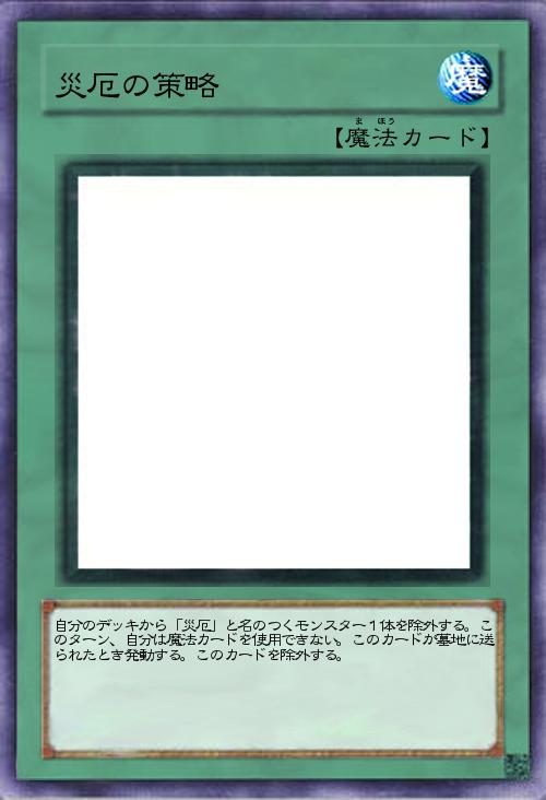 | 自分のデッキから「災厄」と名のつくモンスター1体を除外する。このターン、自分は魔法カードを使用できない。このカードが墓地に送られたとき発動する。このカードを除外する。 | |||