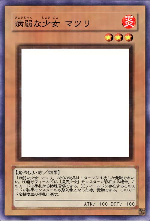| 「病弱な少女 マツリ」の①の効果は1ターンに1度しか発動できない。①自分フィールドに「星霊少女」モンスターが存在する場合、このカードは手札から特殊召喚できる。②フィールドに存在するこのカードが相手モンスターの攻撃対象となった時、発動できる。このカードを持ち主の手札に戻す。 | |||