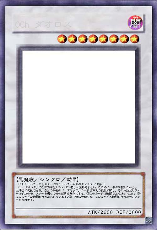 | 「Ch」チューナーモンスター1体+チューナー以外のモンスター1体以上 「OCh ダオロス」の①の効果は1ターンに1度しか発動できない。①このカードのS召喚に成功した場合に発動できる。自分の手札の「コズミック」カードを任意の枚数公開し、その枚数だけフィールド上のモンスターを選んでその効果を無効にする。②このカードは戦闘では破壊されない。③このカードが戦闘を行ったバトルフェイズ終了時に発動する。このカードと戦闘を行ったモンスターを除外する。 | |||