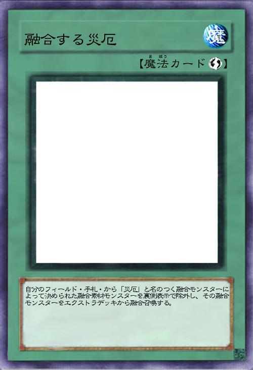| 自分のフィールド・手札・から「災厄」と名のつく融合モンスターによって決められた融合素材モンスターを裏側表示で除外し、その融合モンスターをエクストラデッキから融合召喚する。 | |||