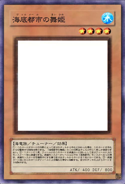 | ①:このカードがカードの効果によって自分のデッキから手札に加わった場合、このカードを手札から攻撃表示で特殊召喚できる。「海底都市の舞姫」のこの効果はデュエル中に1度しか使用できない。②:1ターンに1度、フィールドのこのカードを装備カード扱いとして自分フィールド上のモンスター1体に装備できる。装備モンスターがレベル4以下の「海底都市」モンスターだった場合、装備モンスターを守備表示にする事で自分はデッキからカードを1枚ドローできる。③:装備カード扱いのこのカードがフィールド上を離れた場合に発動する。自分のデッキの上からカードを3枚除外する。 | |||