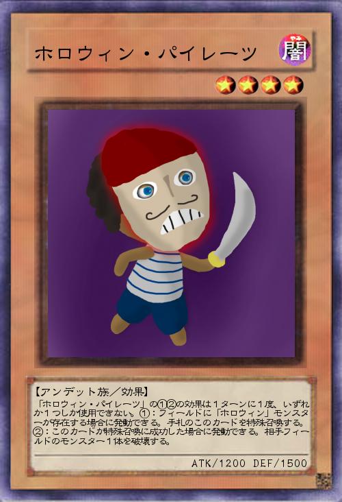 | 「ホロウィン・パイレーツ」の①②の効果は1ターンに1度、いずれか1つしか使用できない。①:フィールドに「ホロウィン」モンスターが存在する場合に発動できる。手札のこのカードを特殊召喚する。②:このカードが特殊召喚に成功した場合に発動できる。相手フィールドのモンスター1体を破壊する。 | |||